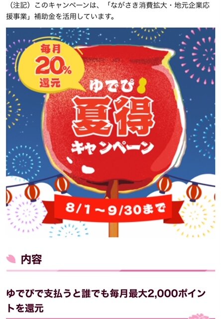 20%ポイント還元中!大村市の電子マネー「ゆでぴ夏得キャンペーン」